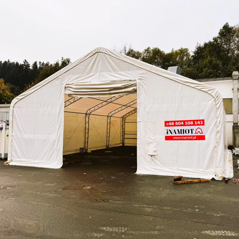 Denne type telt er designet af Inamiot til brugere af TIR-lastbiler. Takket være en 4 m bred og 4,5 m høj ramme kan en varevogn nemt køre ind i værkstedsteltet. Dette værkstedstelt vælges meget ofte af kunder fra bilindustrien, især værksteder for varevogne, lastbiler, vulkaniseringstjenester for store køretøjer, entreprenørmaskiner og landbrugsmaskiner. Med en bredde på 9 m er det muligt at arbejde frit omkring køretøjet og opstille maskine og arbejdsborde under værkstedsteltets vægge.