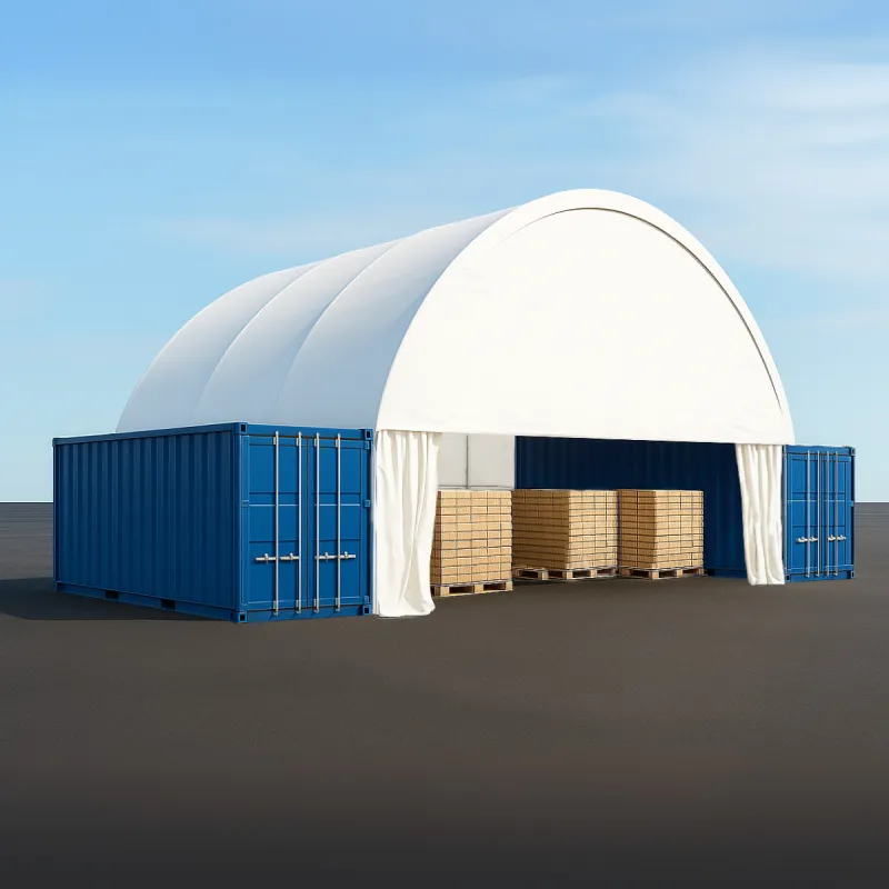 Použitie prednej steny s bránou je riešením, ktoré umožňuje bezpečné uloženie tovaru vo vnútri prístrešku a účinnú ochranu pred poveternostnými vplyvmi. Vďaka širokému vchodu je možný ľahký prístup do vnútra haly a celá konštrukcia získava estetický a profesionálny vzhľad. Modulárna konštrukcia umožňuje rýchlu montáž a demontáž prvkov, čo je užitočné najmä pri premiestňovaní objektu na iné miesto.